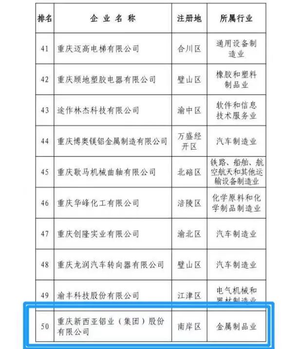 1月9日,重慶市工商聯(lián)(總商會)六屆一次常委會議、六屆二次執(zhí)委會議召開。會議發(fā)布了2022重慶民營企業(yè)科技創(chuàng)新指數(shù)百強企業(yè)榜單。新西亞鋁業(yè)集團上榜“2022重慶民營企業(yè)科技創(chuàng)新指數(shù)百強企業(yè)”。