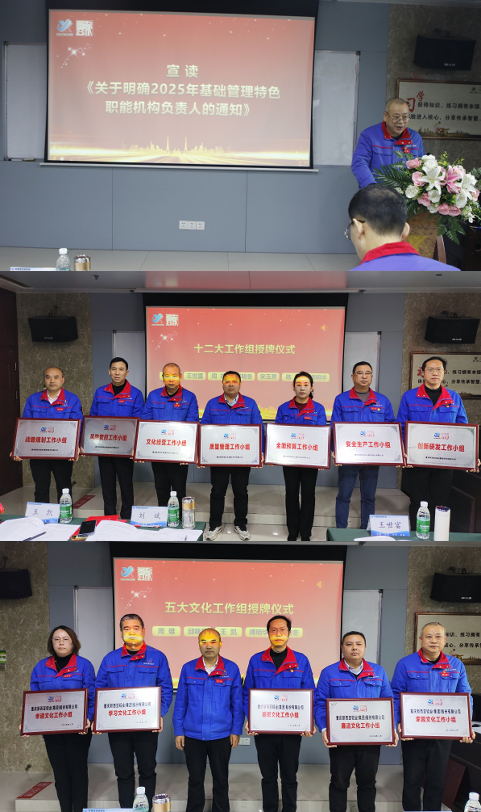 總經(jīng)理助理周雄宣讀《關(guān)于明確2025年基礎(chǔ)管理特色職能機構(gòu)負(fù)責(zé)人的通知》,明確了各特設(shè)機構(gòu)的職能職責(zé)。劉斌董事長和監(jiān)事會主席王世富為特設(shè)機構(gòu)負(fù)責(zé)人授牌,進(jìn)一步強化了公司的基礎(chǔ)管理。