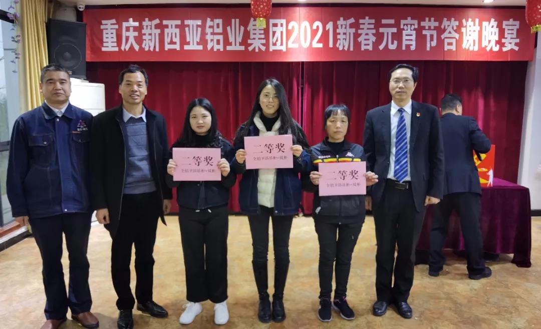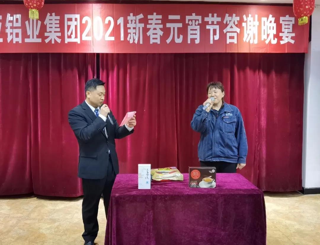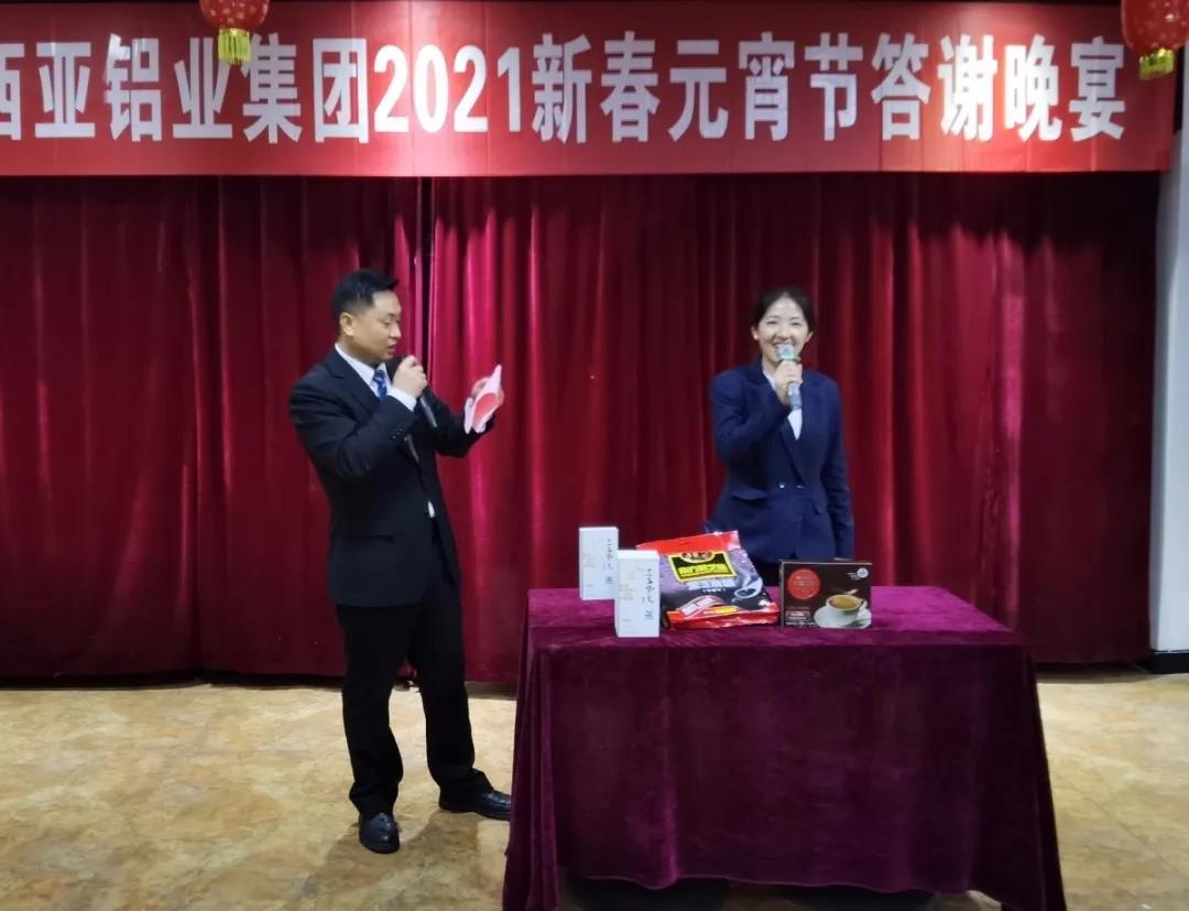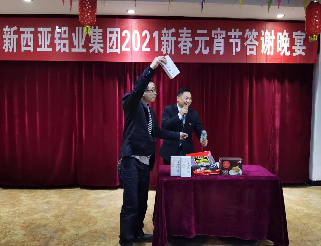 本次晚宴,為進(jìn)一步增加和全體員工之間的互動(dòng),除了設(shè)置有特等獎(jiǎng)、一、二、三等獎(jiǎng)四個(gè)獎(jiǎng)項(xiàng)抽取,還設(shè)置了“聽口令搶禮品”、“趣味答題贏大獎(jiǎng)”兩個(gè)環(huán)節(jié)。員工們一邊盡情地品味著美味佳肴,一邊興高采烈地享受著贏大獎(jiǎng)活動(dòng)帶來的驚喜和快樂。整個(gè)抽獎(jiǎng)和趣味游戲贏大獎(jiǎng)活動(dòng),掌聲、笑聲、歡呼聲此起彼伏,充分展示出新西亞鋁業(yè)集團(tuán)和諧向上、欣欣向榮的美好局面。